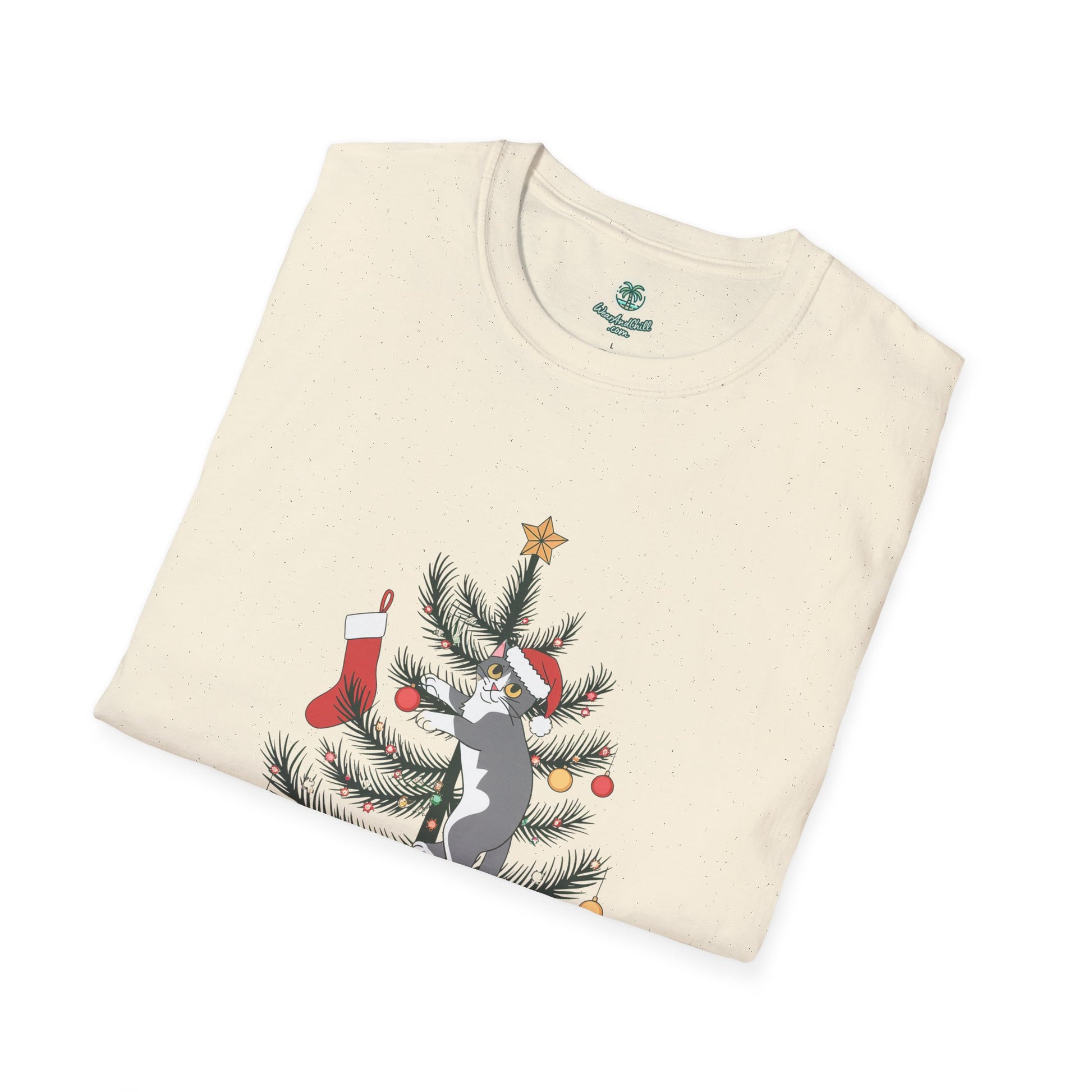Introducing the perfect blend of festive charm and feline fun: the "A Cat Climbing a Twinkling Christmas Tree" T-Shirt from our Christmas & Cats Collection. This whimsical tee captures the playful spirit of a curious cat amidst a sparkling Christmas tree, adding a touch of holiday magic to your wardrobe. Crafted from ultra-soft cotton, it offers a comfortable fit that's ideal for celebrating the season. Whether you're a cat lover or simply appreciate unique festive apparel, this shirt is a must-have. Embrace the holidays in style and let your outfit shine as bright as your tree!