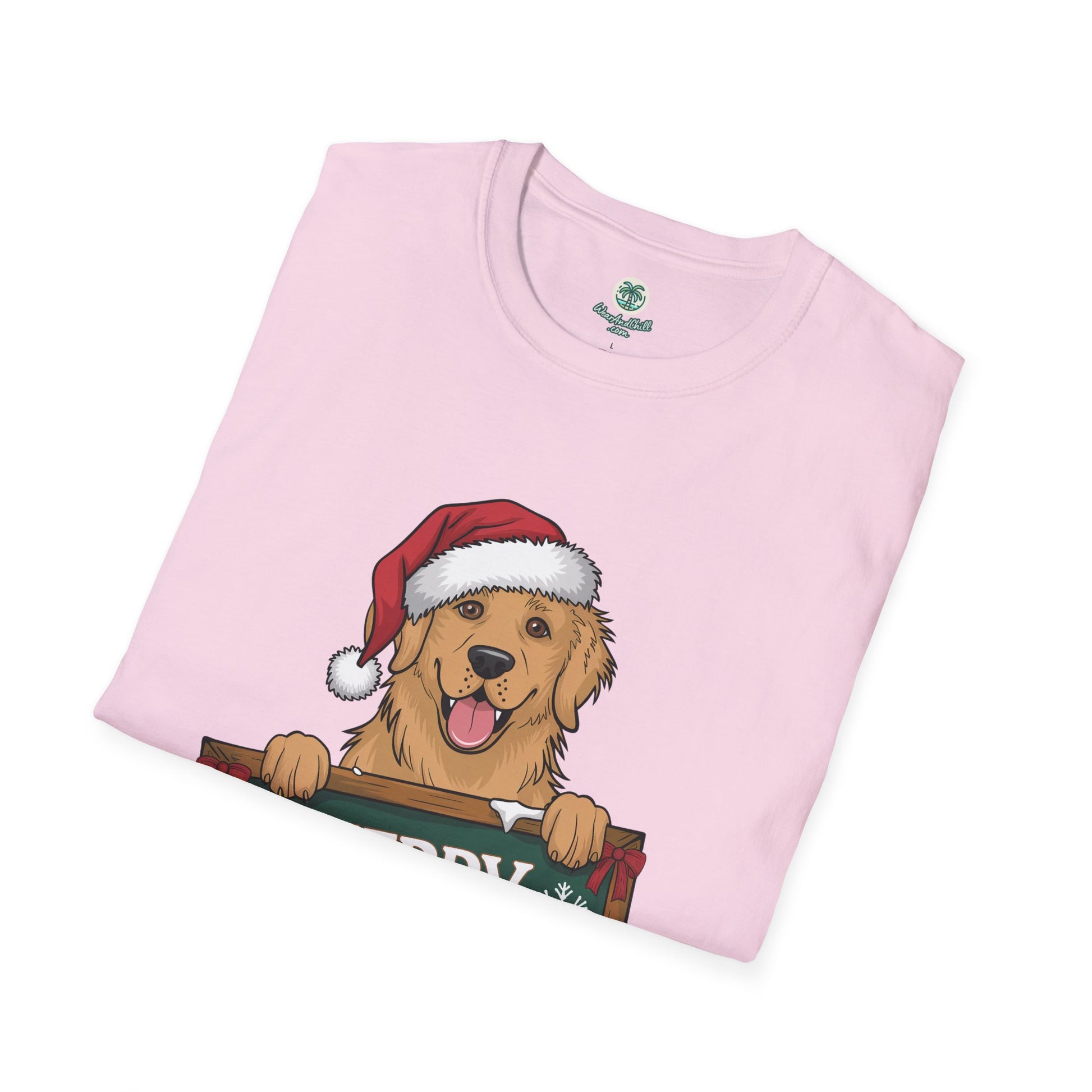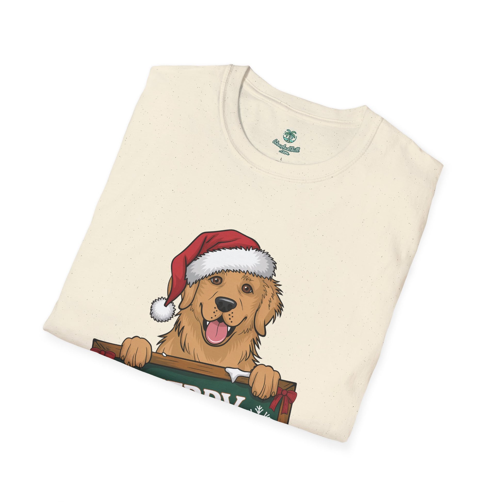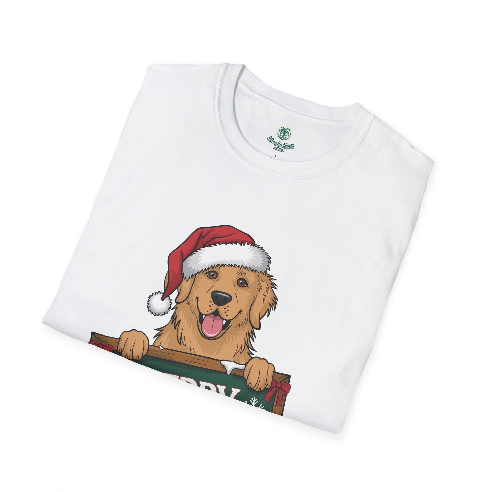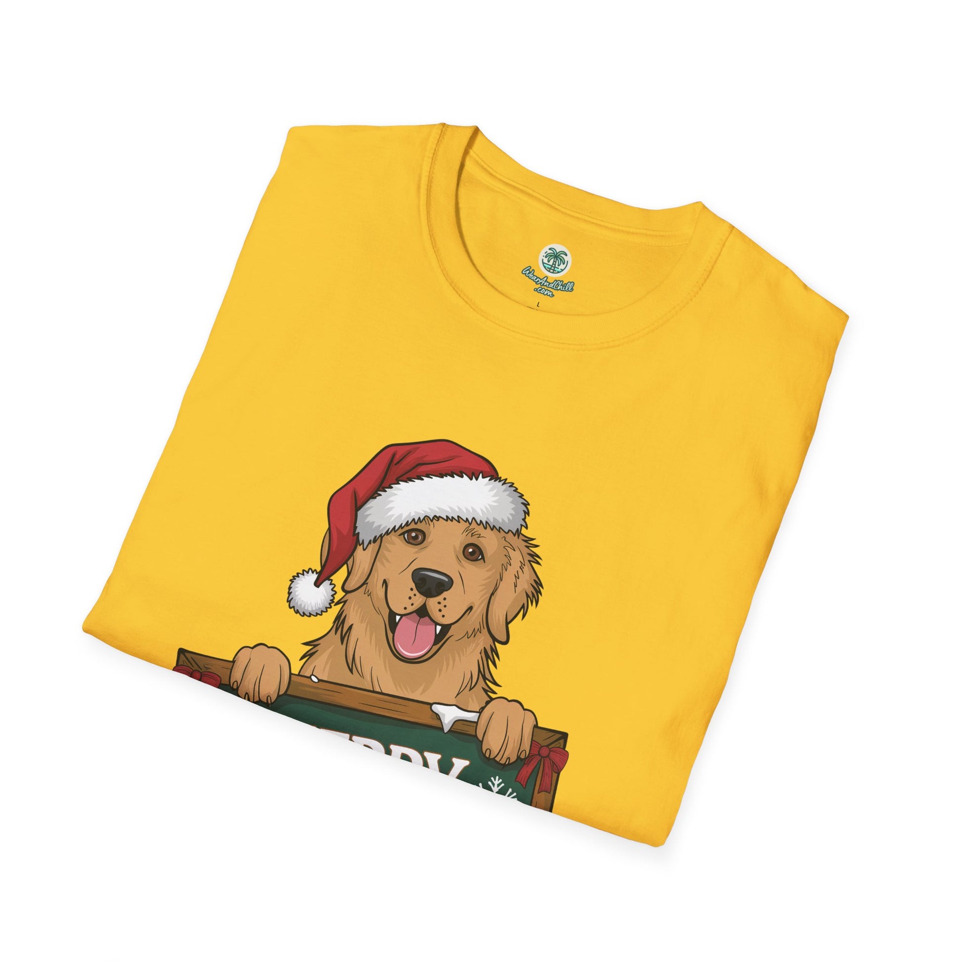 Get into the festive spirit with our "A Cheerful Golden Retriever with a Merry Christmas Sign" T-Shirt from our Christmas & Dogs Collection. This adorable design features a joyful golden retriever, capturing a heartwarming holiday vibe that's perfect for dog lovers and Christmas enthusiasts alike. Made from soft, high-quality cotton, this t-shirt ensures all-day comfort and style. Whether you're attending a cozy gathering or simply spreading cheer, this tee is your go-to choice. Available in various sizes, it's a perfect holiday gift for yourself or fellow dog lovers. Celebrate Christmas in style with this delightful holiday-themed t-shirt!