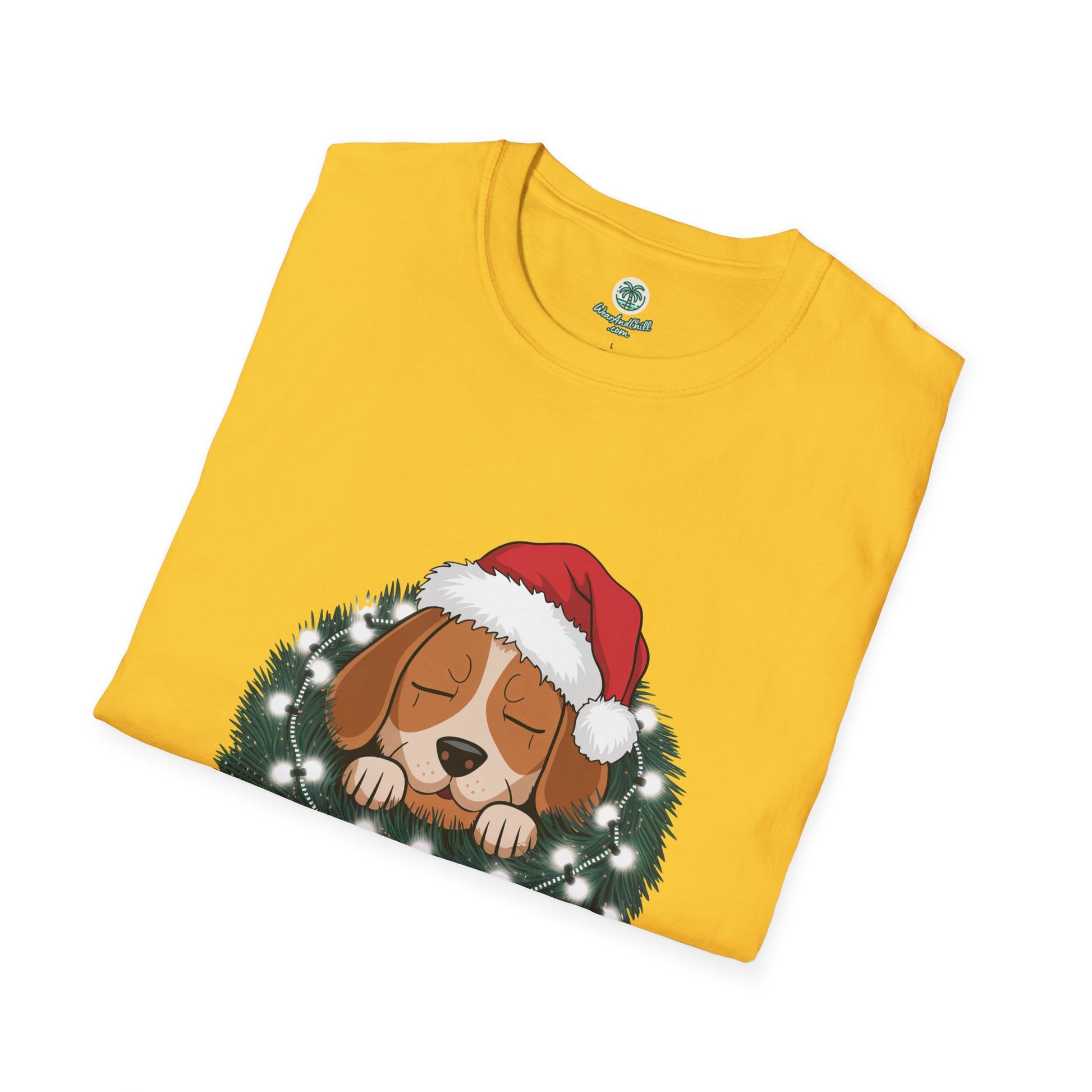 Embrace the spirit of the holidays with our "Peaceful Dog Wrapped in a Twinkling Garland" T-Shirt from our Christmas & Dogs Collection. This enchanting design captures a serene pup nestled in a luminous garland, evoking warmth and joy. Made from ultra-soft, breathable cotton, this shirt promises all-day comfort. Perfect for dog lovers and holiday enthusiasts alike, celebrate the season in style and let your festive spirit shine. Available in various sizes and easy to pair with any outfit, this t-shirt adds a whimsical touch to your winter wardrobe. Get ready to spread cheer and canine charm this Christmas!