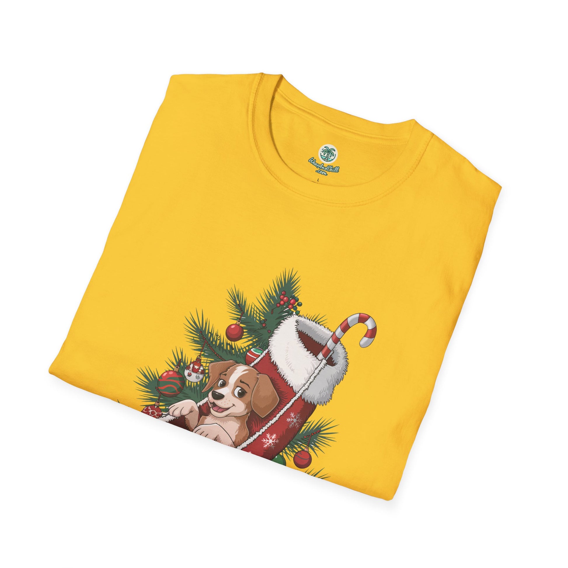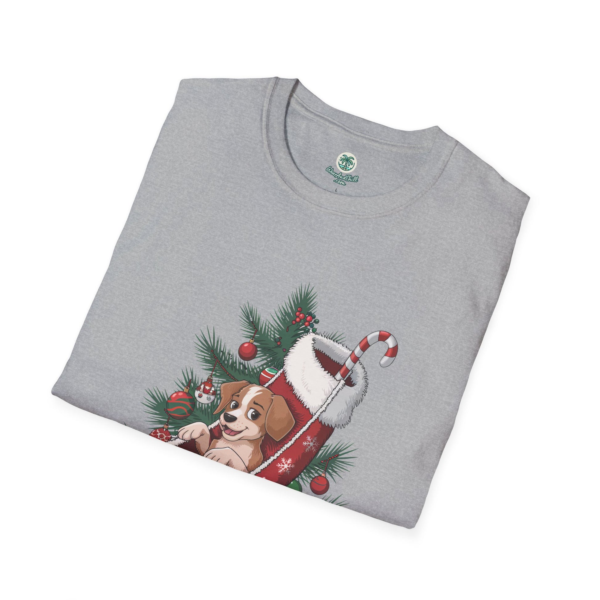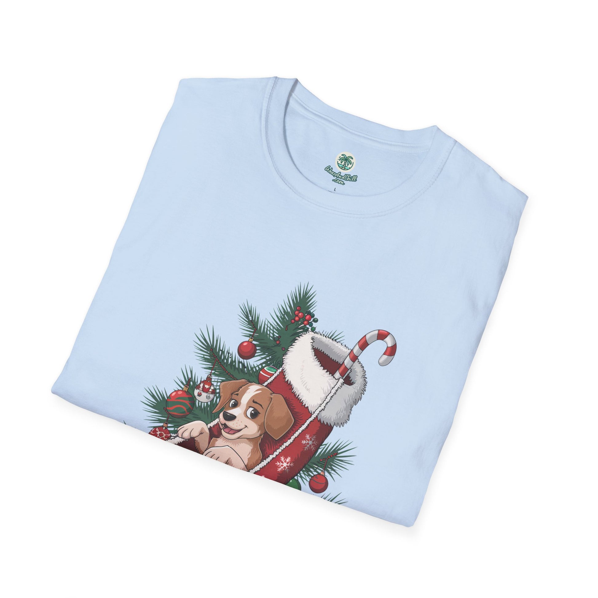Unwrap the magic of the holidays with our Adorable Puppy in a Christmas Stocking Hammock T-Shirt from the exclusive Christmas & Dogs Collection. This delightful tee showcases a charming puppy cozily nestled in a festive stocking-turned-hammock. Crafted from premium, soft cotton, it's perfect for embracing the holiday spirit in comfort and style. Whether you're shopping for a dog lover or adding a touch of whimsy to your festive wardrobe, this t-shirt is a heartwarming choice. Celebrate the joy of Christmas with a design that's destined to bring smiles. Available in multiple sizes for everyone on your list!