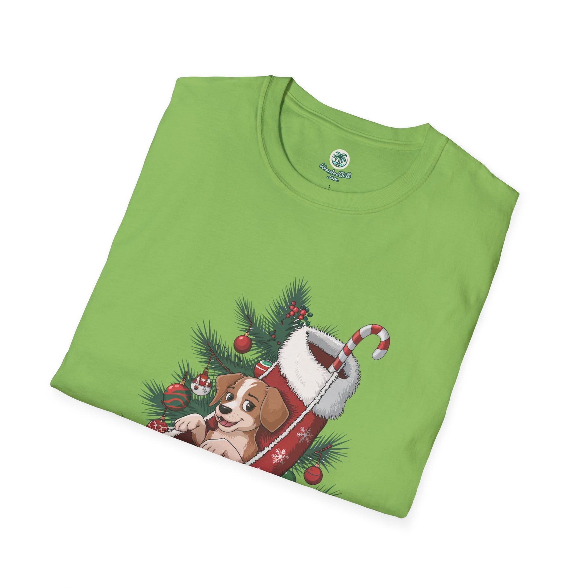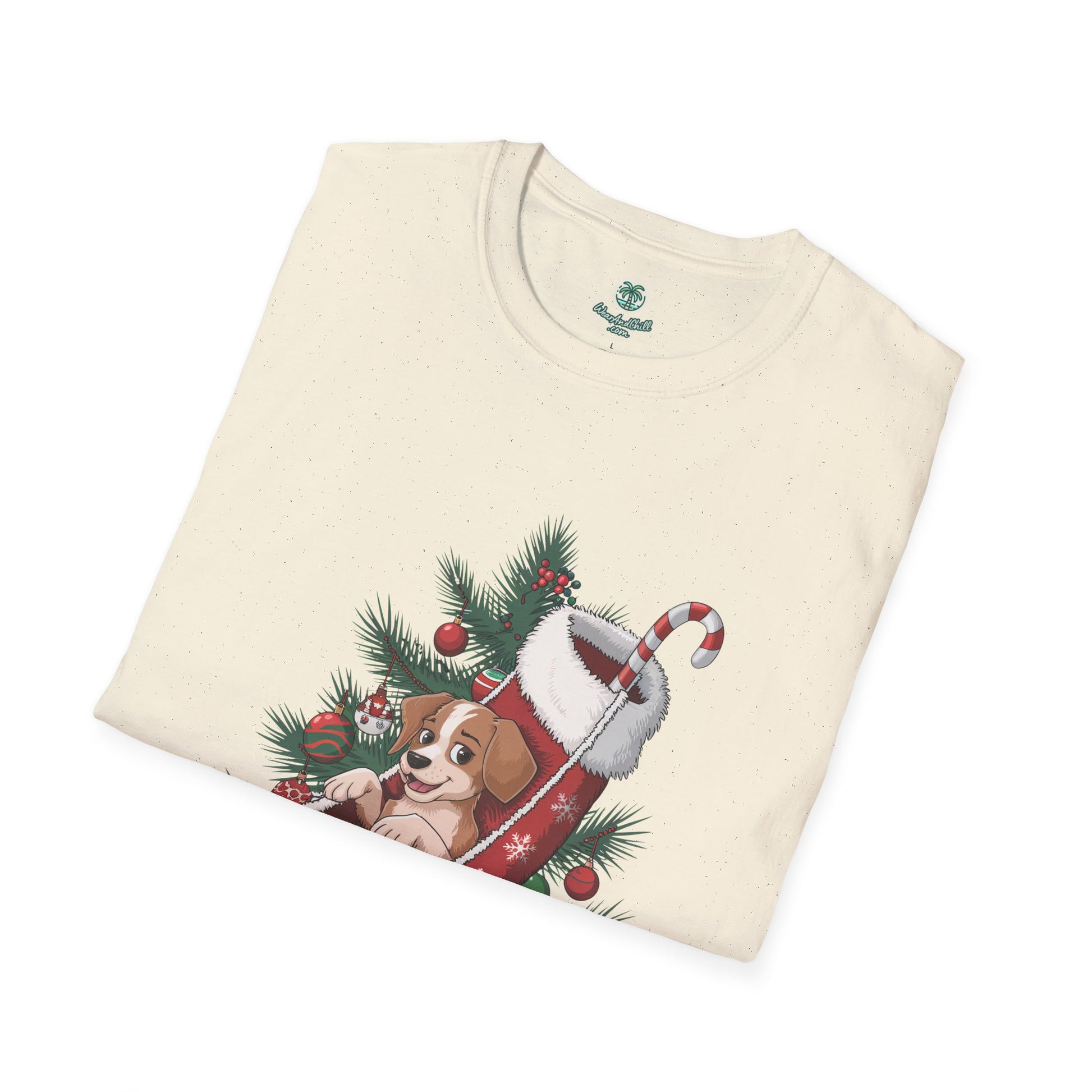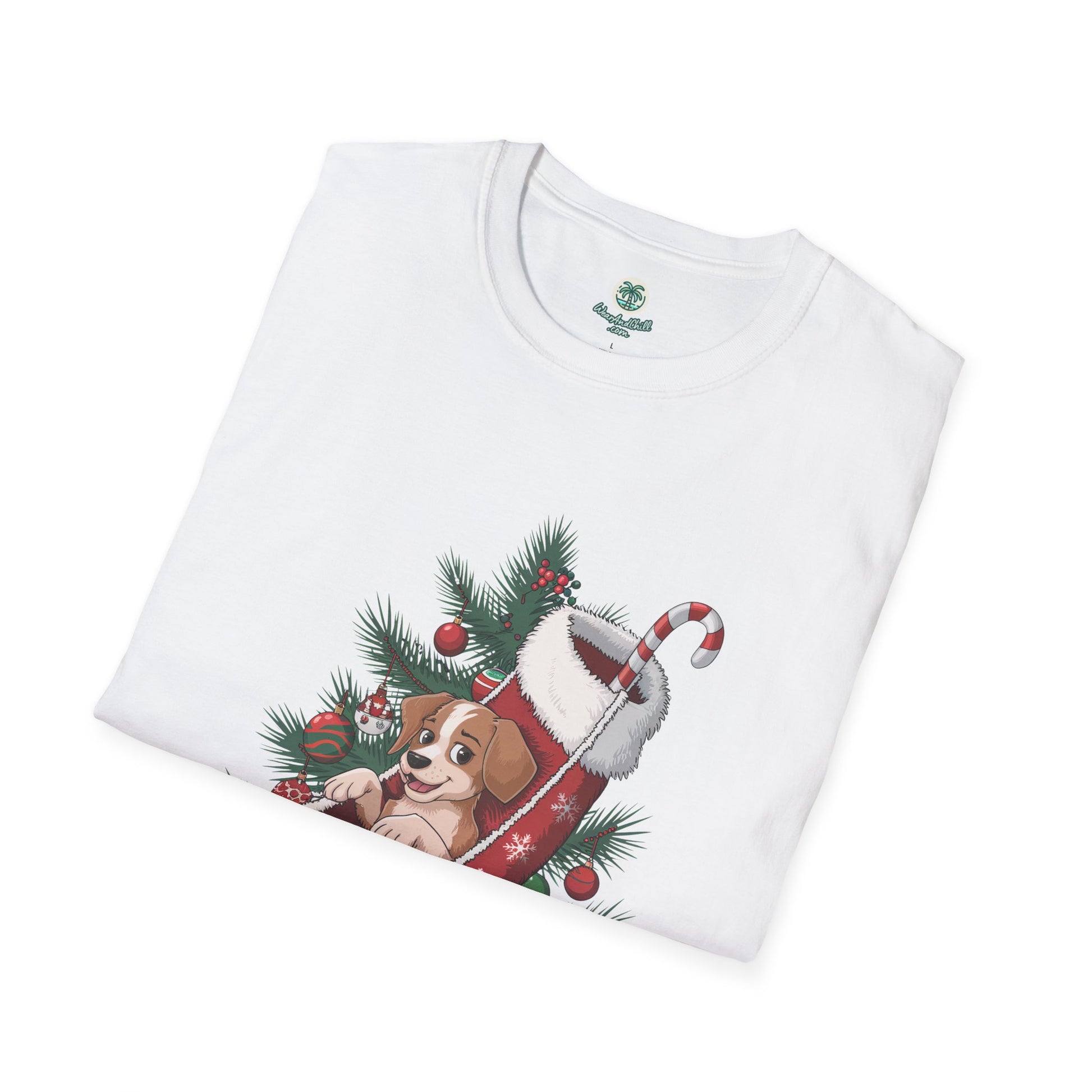 Unwrap the magic of the holidays with our Adorable Puppy in a Christmas Stocking Hammock T-Shirt from the exclusive Christmas & Dogs Collection. This delightful tee showcases a charming puppy cozily nestled in a festive stocking-turned-hammock. Crafted from premium, soft cotton, it's perfect for embracing the holiday spirit in comfort and style. Whether you're shopping for a dog lover or adding a touch of whimsy to your festive wardrobe, this t-shirt is a heartwarming choice. Celebrate the joy of Christmas with a design that's destined to bring smiles. Available in multiple sizes for everyone on your list!