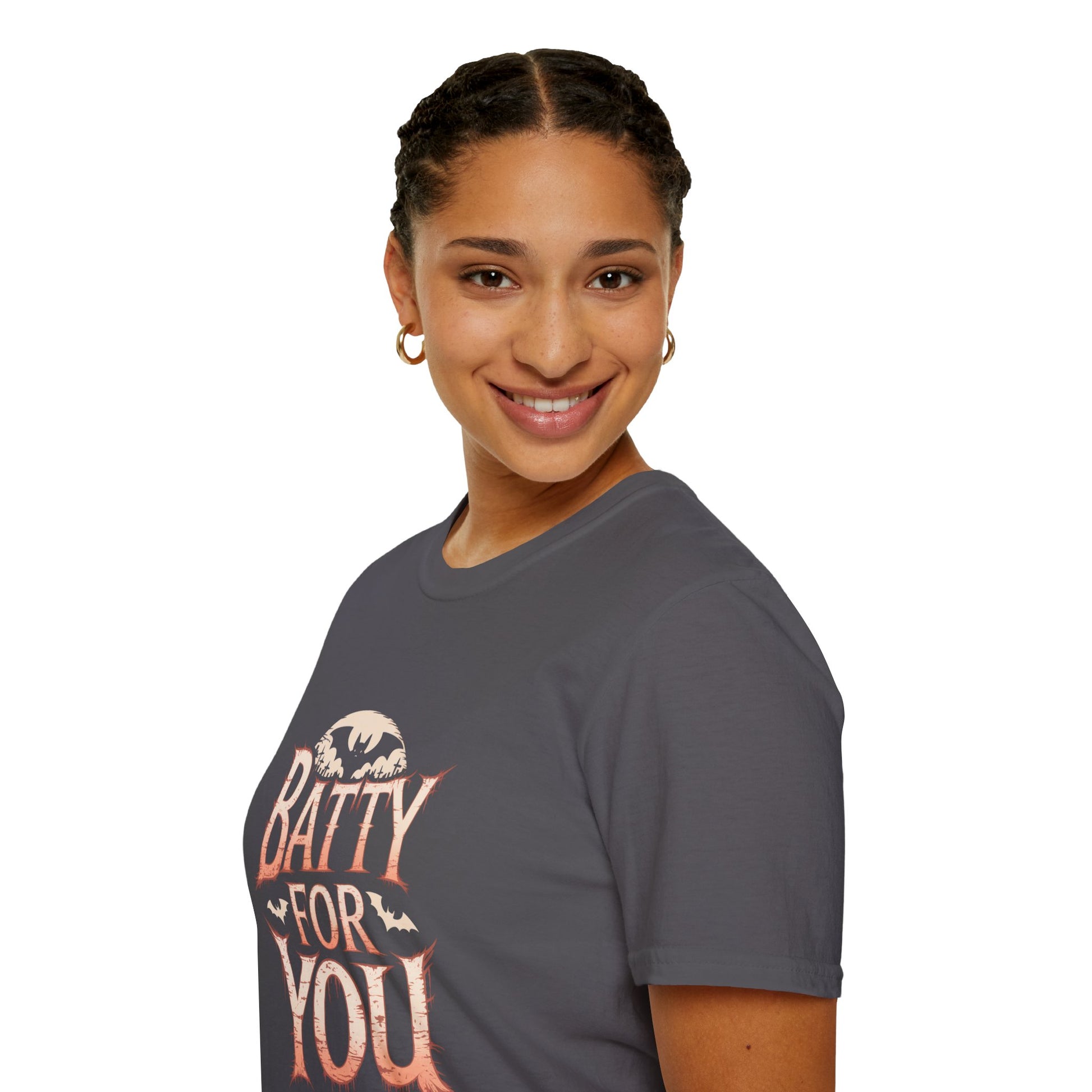 Get ready to go batty for our playful "Batty for You" white lie t-shirt! Crafted from ultra-soft, premium cotton, this tee guarantees both comfort and style. Featuring a charming bat graphic and a fun, cheeky message, it's perfect for adding a touch of humor to any outfit. Ideal for casual outings, Halloween parties, or simply lounging at home, this shirt is an absolute must-have. Embrace your quirky side and let everyone know you're just a little bit crazy—in the best way. Stay comfy, stay stylish, and show off your personality with "Batty for You"!