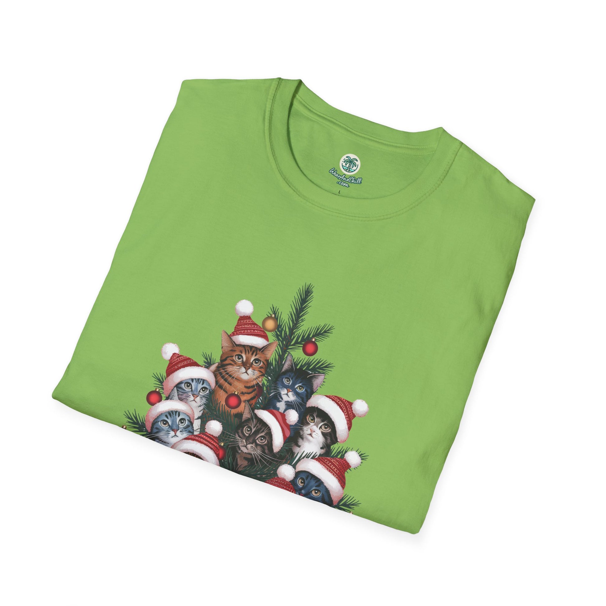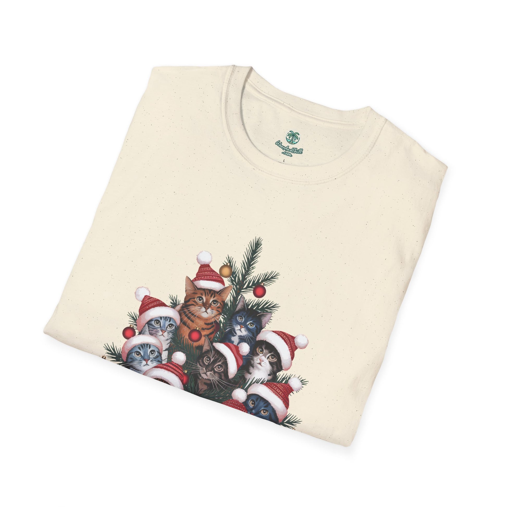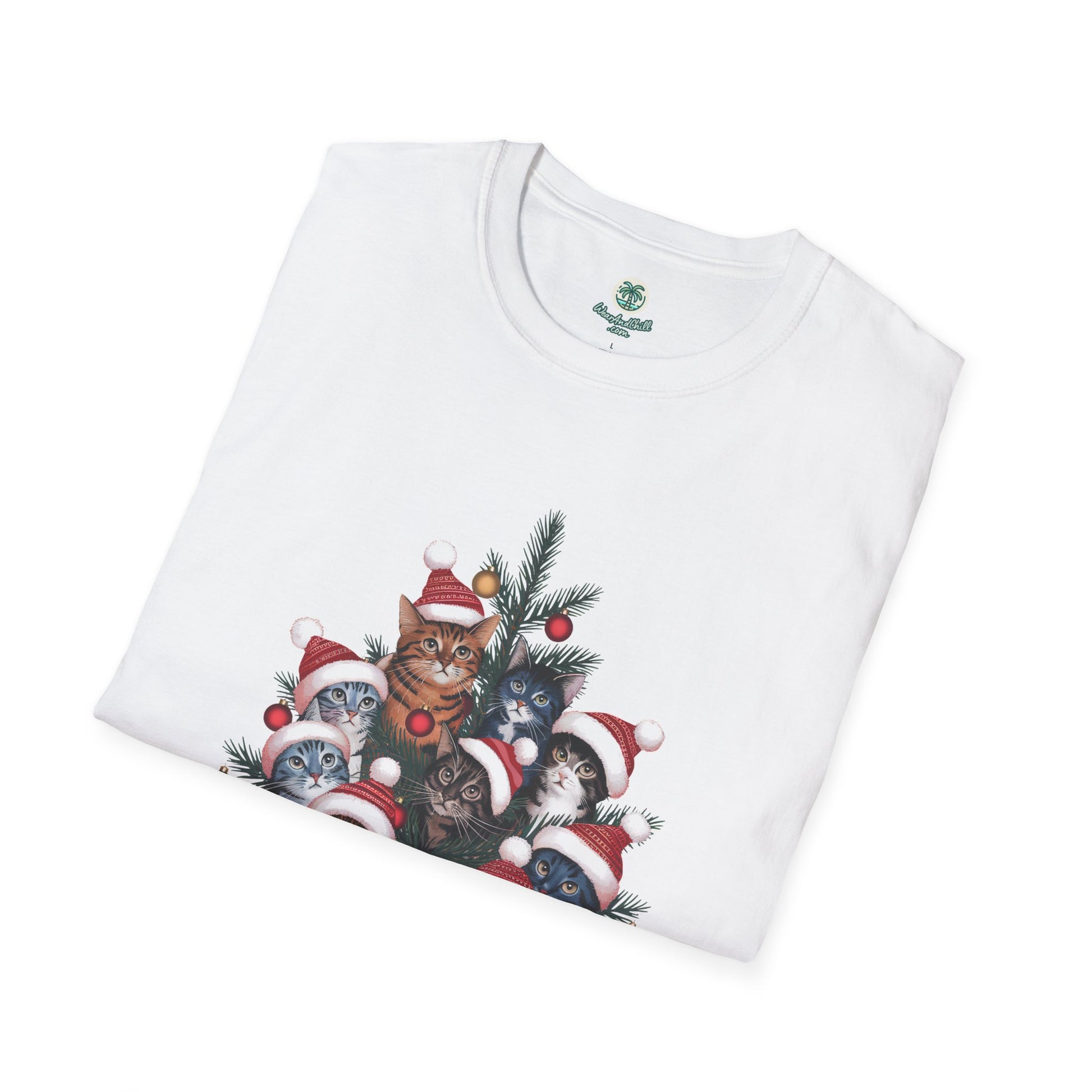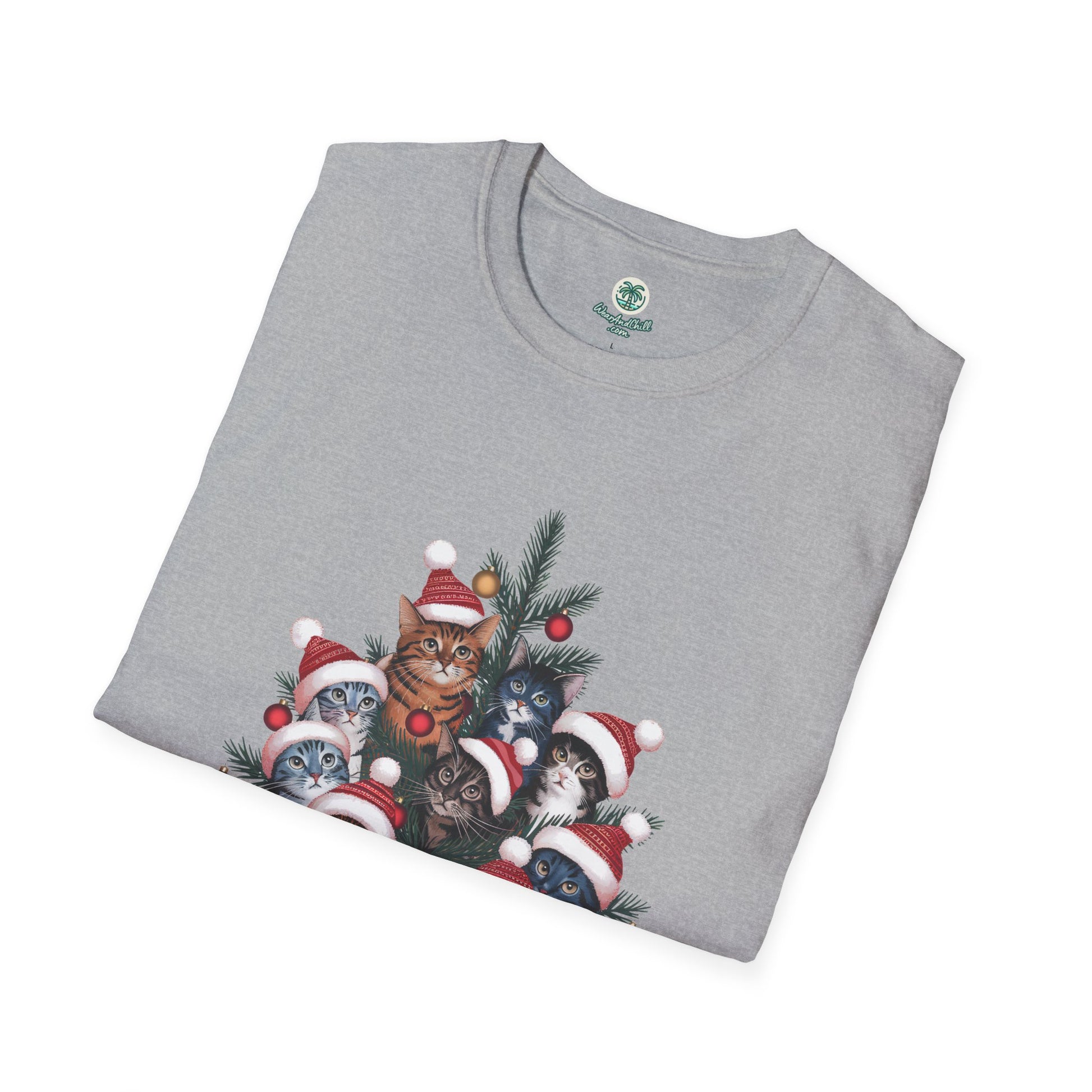 Product Description: Welcome the holidays with our Cats in Winter Hats T-Shirt from the Christmas & Cats Collection. This playful design features charming cats donning cozy winter hats, gathered around a petite Christmas tree. Crafted from ultra-soft, high-quality fabric, this tee promises both comfort and style. Perfect for cat lovers and those who treasure the joy of the festive season, it's an ideal gift that spreads cheer. Whether you're lounging at home or joining a holiday gathering, this whimsical shirt will be your go-to choice for celebrating in spirited fashion. Embrace the magic of Christmas with every wear!