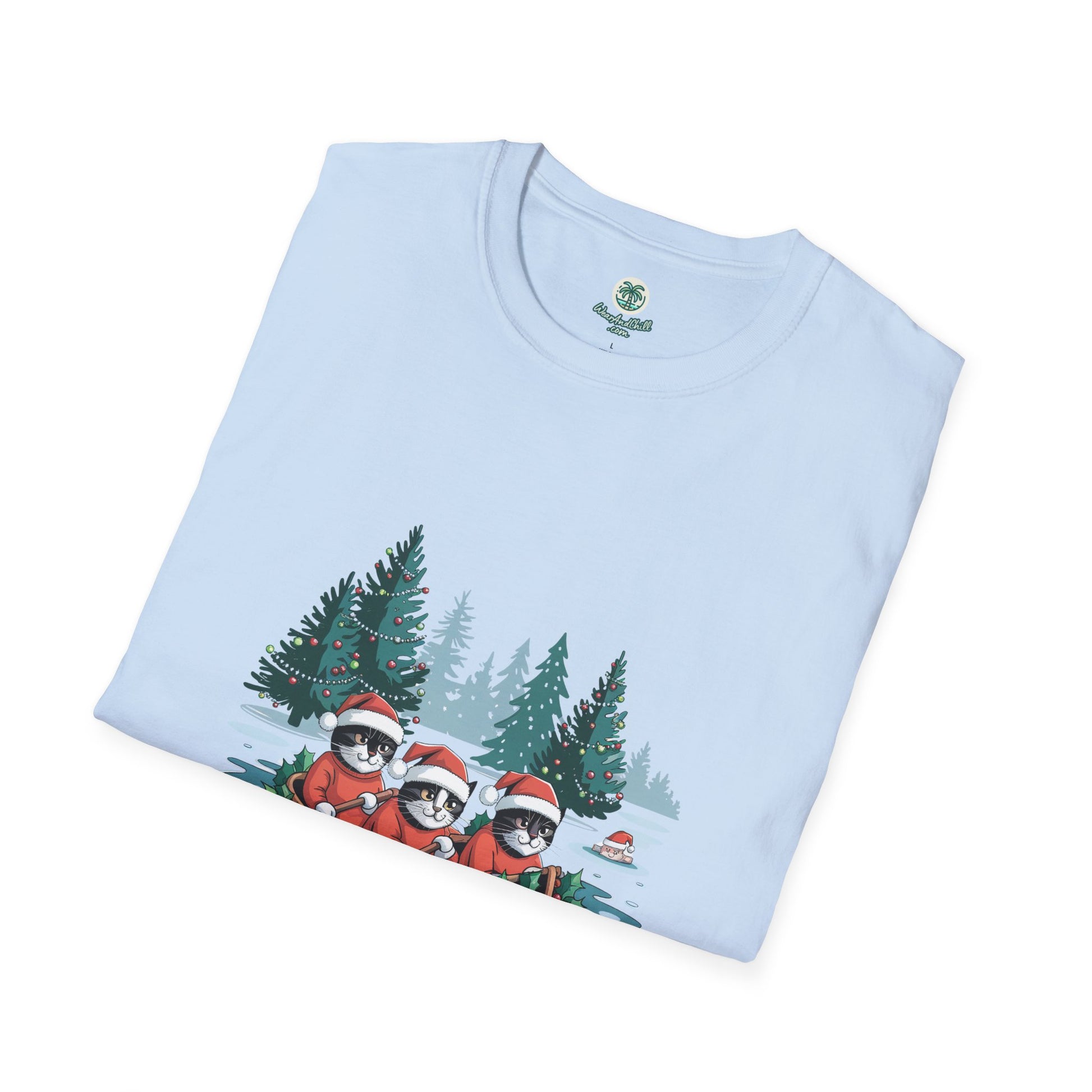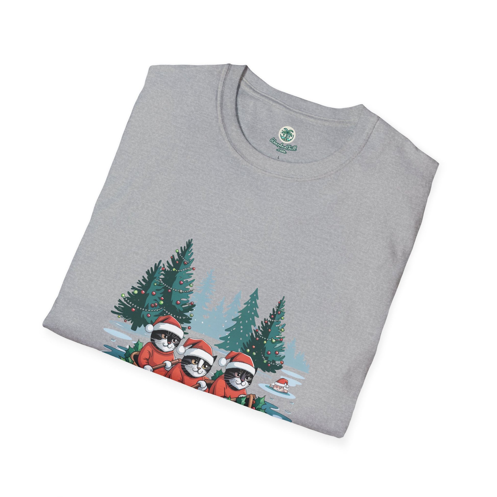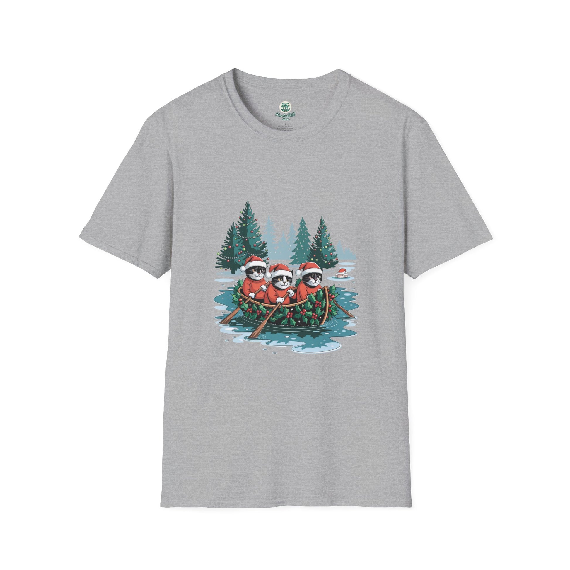 Embrace the *festive spirit* with our unique Cats Rowing a Tiny Boat Made of Holly Leaves T-shirt from the exclusive Christmas & Cats Collection. This whimsical design features adorable cats skillfully navigating a boat crafted from lush holly leaves, capturing the essence of holiday cheer and feline fun. Made from premium, soft cotton, this shirt offers both comfort and durability for all-day wear. Perfect for cat lovers and festive enthusiasts alike, it’s sure to bring a smile to your face and those around you. Celebrate the holidays in style with this must-have statement piece! Available in various sizes.