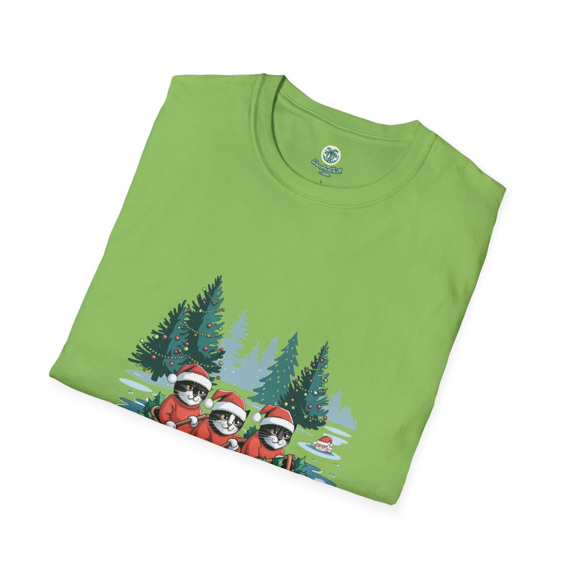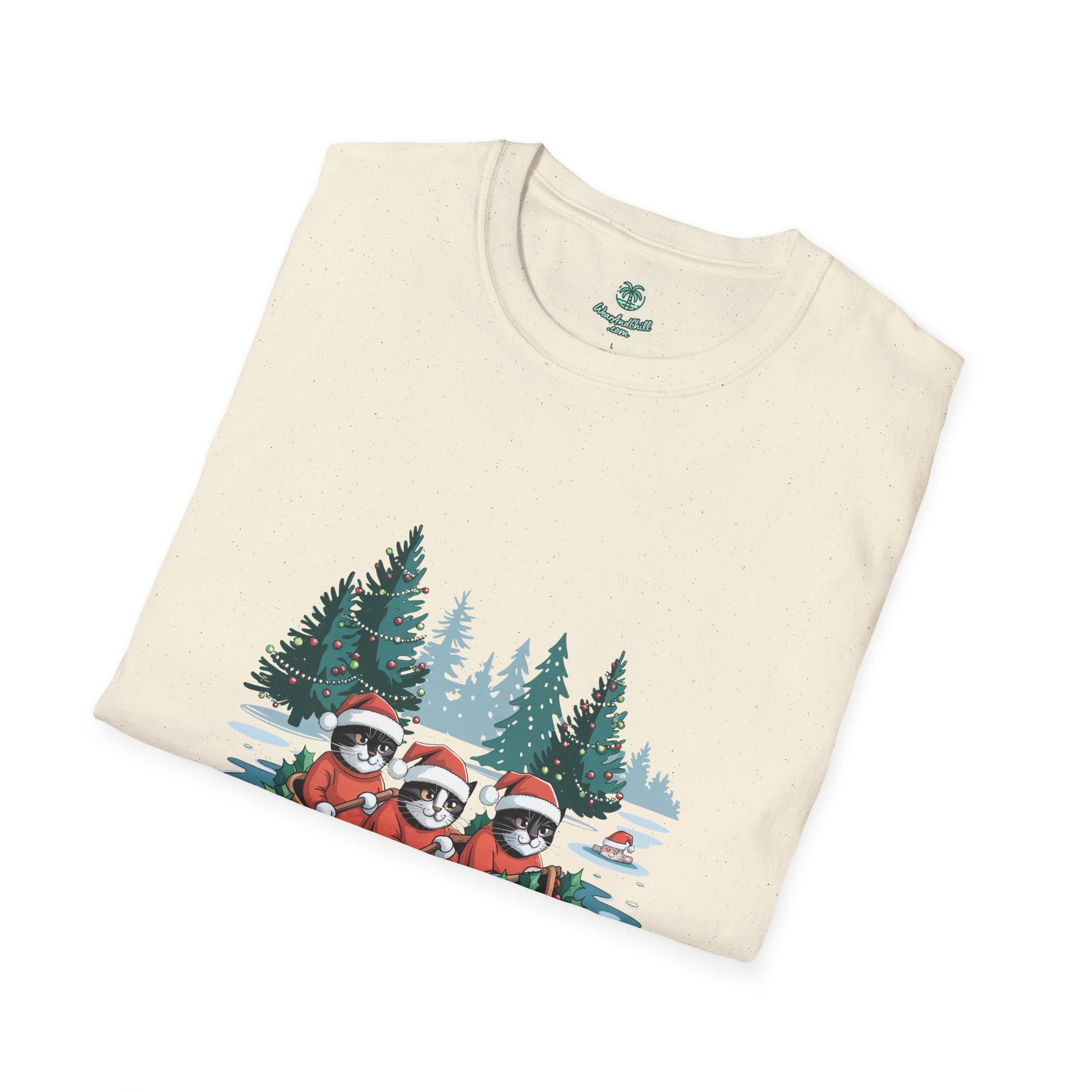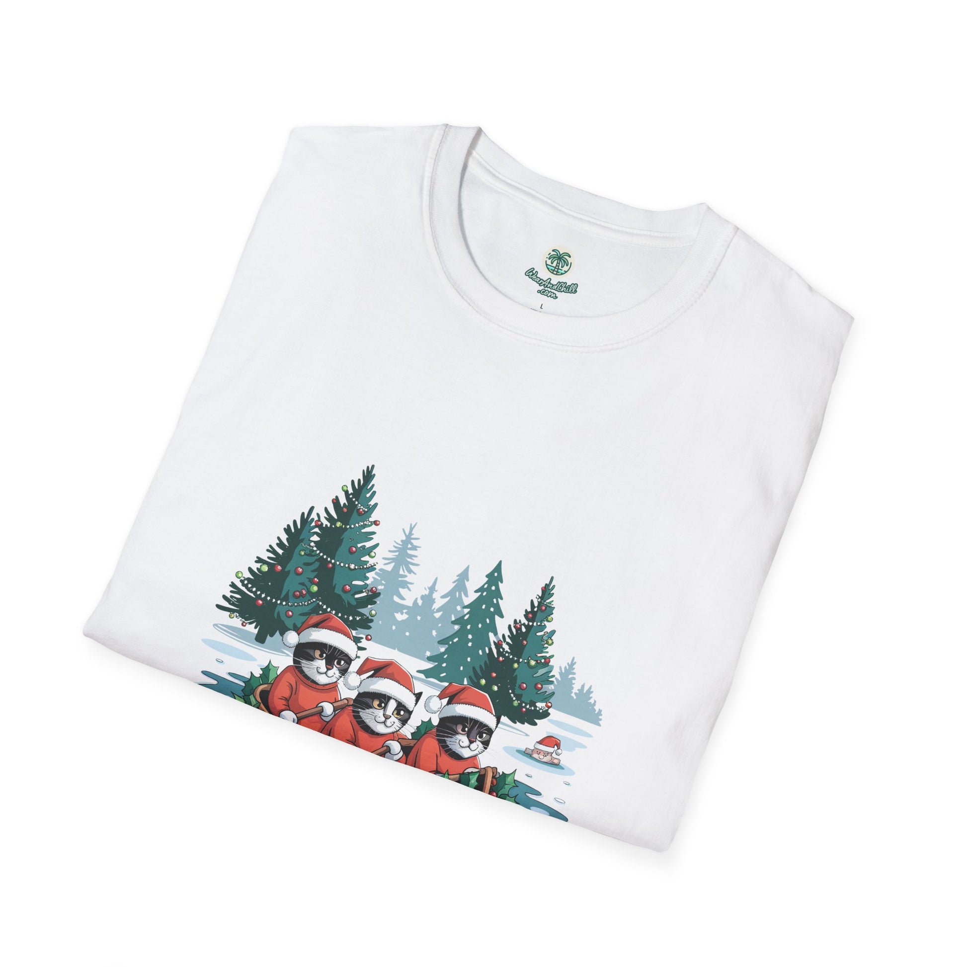 Embrace the *festive spirit* with our unique Cats Rowing a Tiny Boat Made of Holly Leaves T-shirt from the exclusive Christmas & Cats Collection. This whimsical design features adorable cats skillfully navigating a boat crafted from lush holly leaves, capturing the essence of holiday cheer and feline fun. Made from premium, soft cotton, this shirt offers both comfort and durability for all-day wear. Perfect for cat lovers and festive enthusiasts alike, it’s sure to bring a smile to your face and those around you. Celebrate the holidays in style with this must-have statement piece! Available in various sizes.