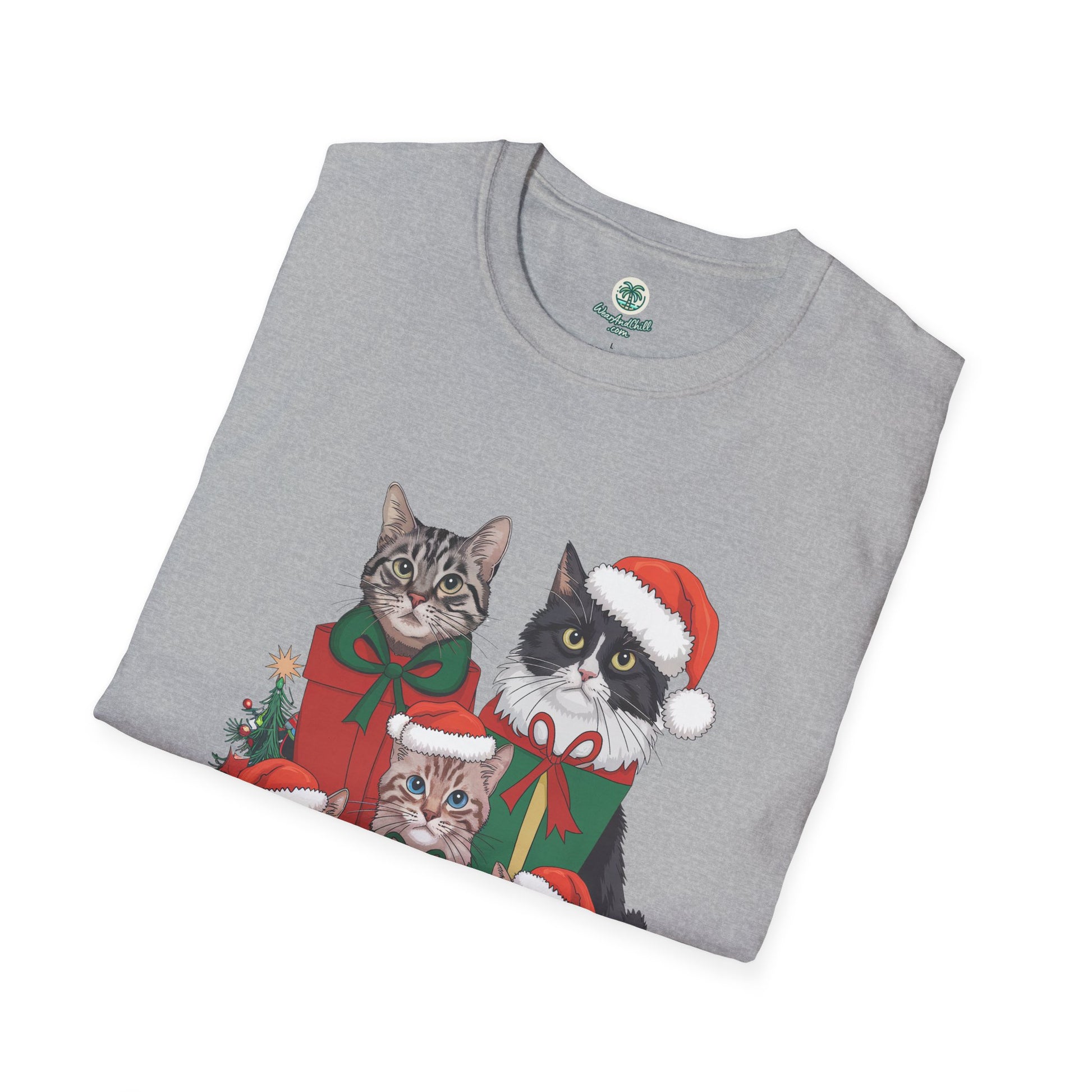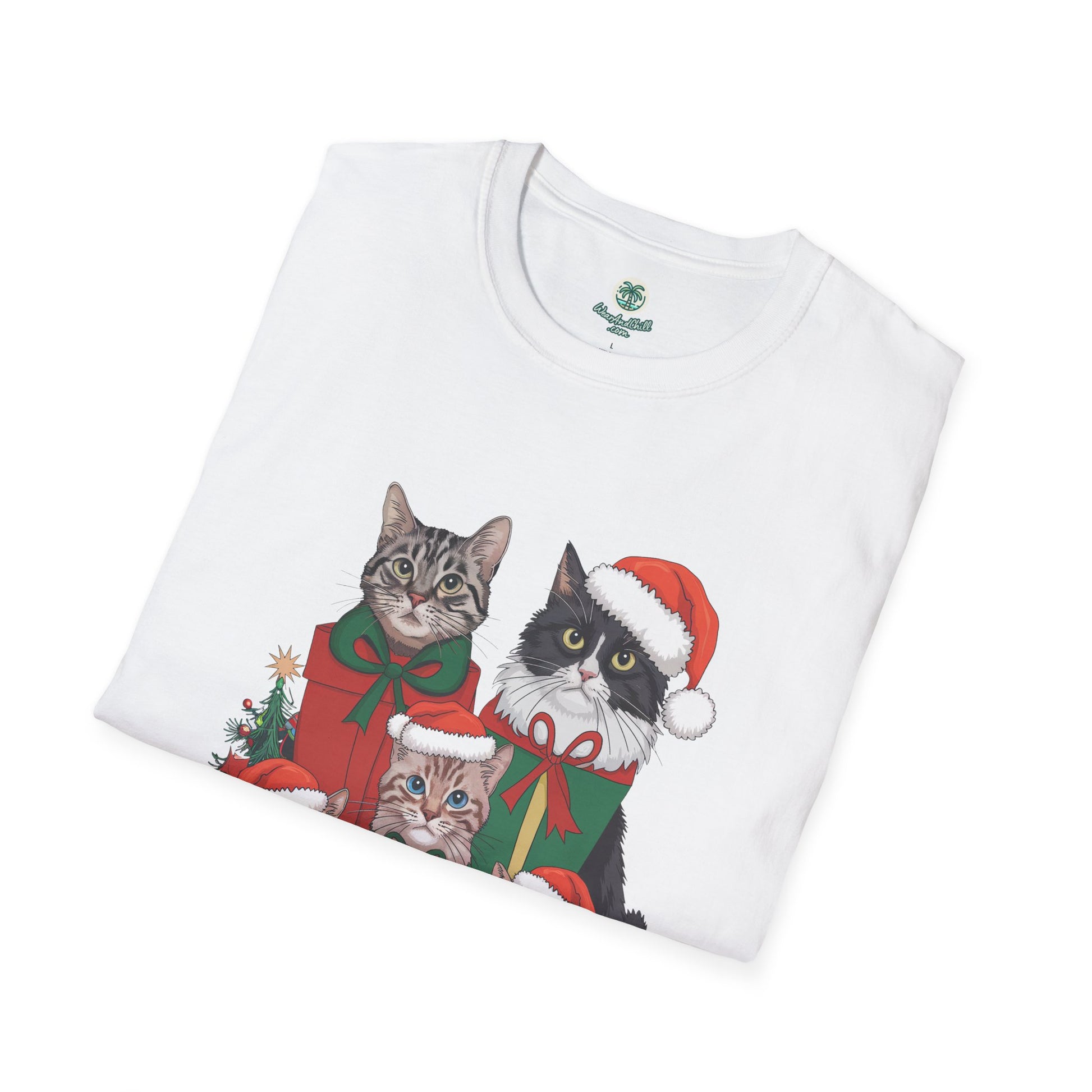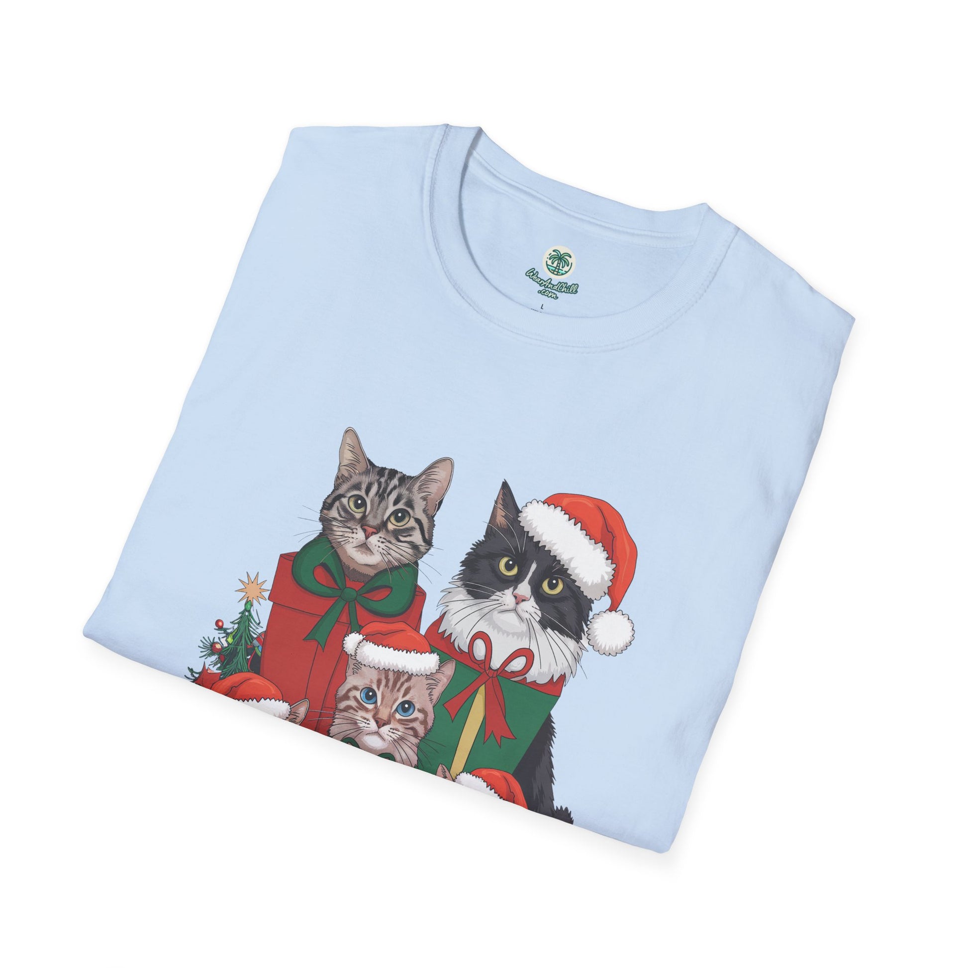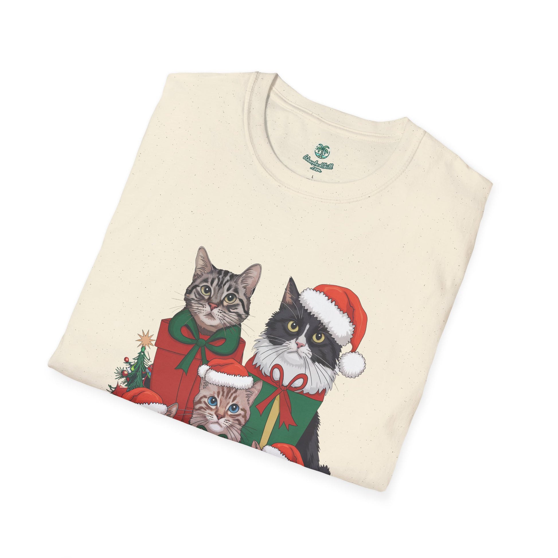 Introducing the *purrfect* holiday tee from our Christmas & Cats Collection! This adorable t-shirt features whimsical cats adorned with present-shaped collars, capturing the festive spirit of the season. Made from ultra-soft, breathable cotton, this charming top is perfect for cozy holiday gatherings or a cheerful day out. The playful design combines the love of cats and Christmas, making it an ideal gift for cat enthusiasts and holiday lovers alike. Available in multiple sizes and featuring a comfortable fit, this t-shirt will add a dash of joy to your festive wardrobe. Embrace the holiday cheer with our Cats with Present-Shaped Collars tee!