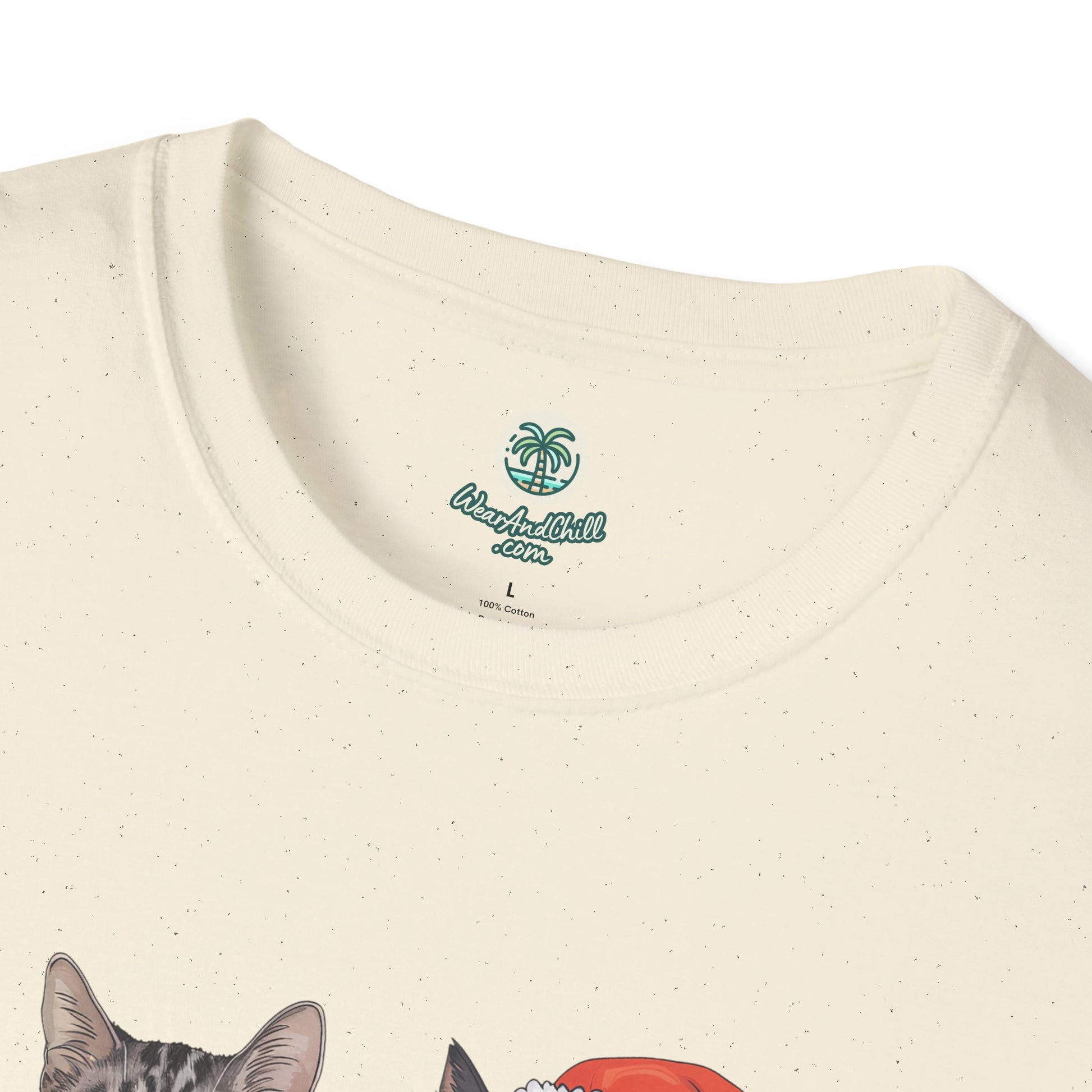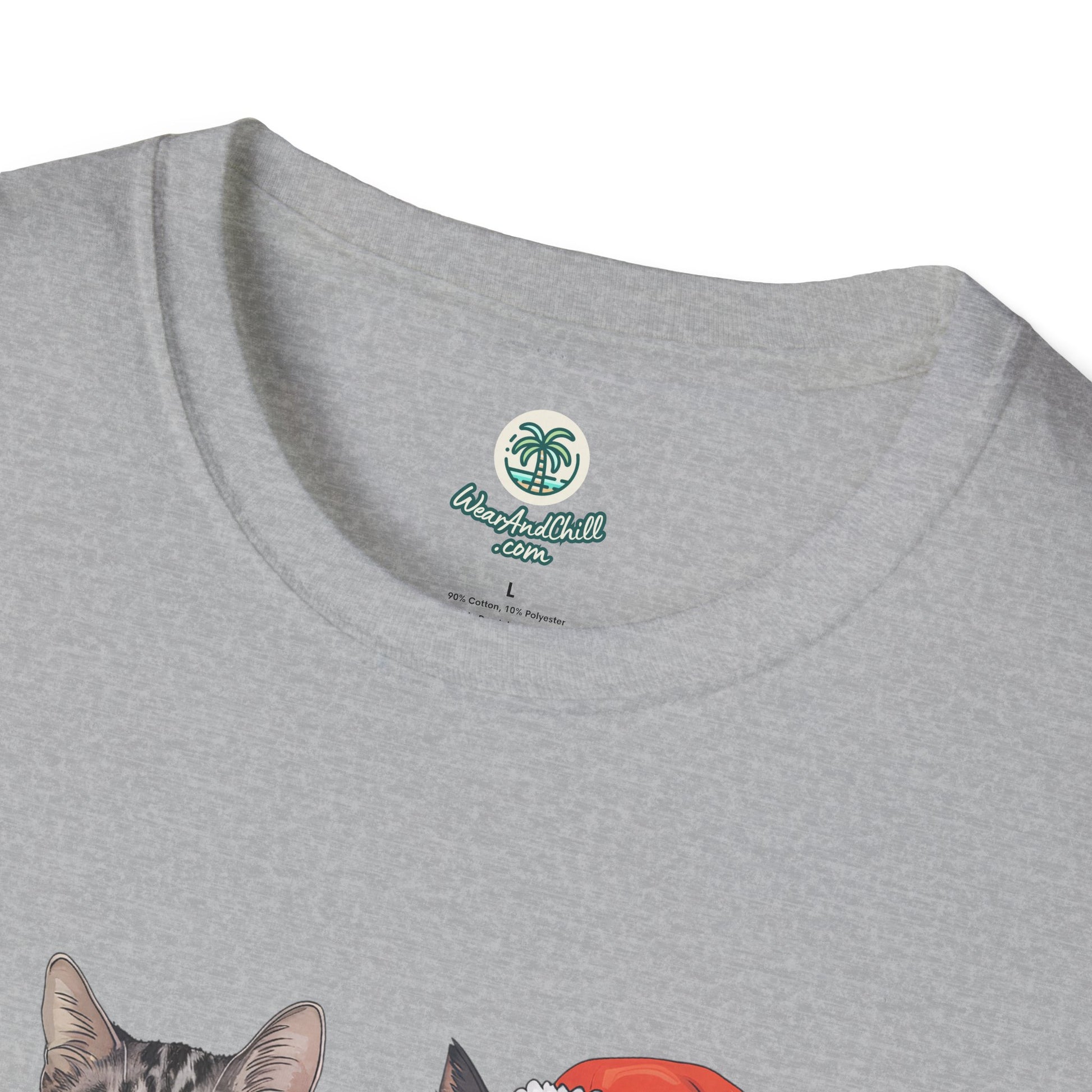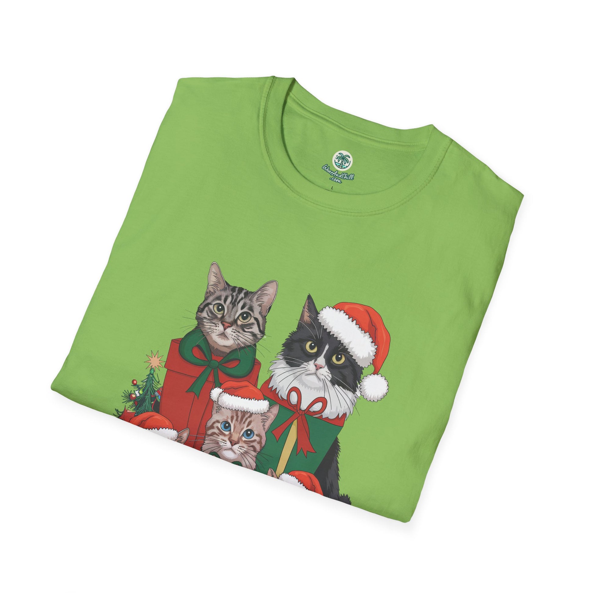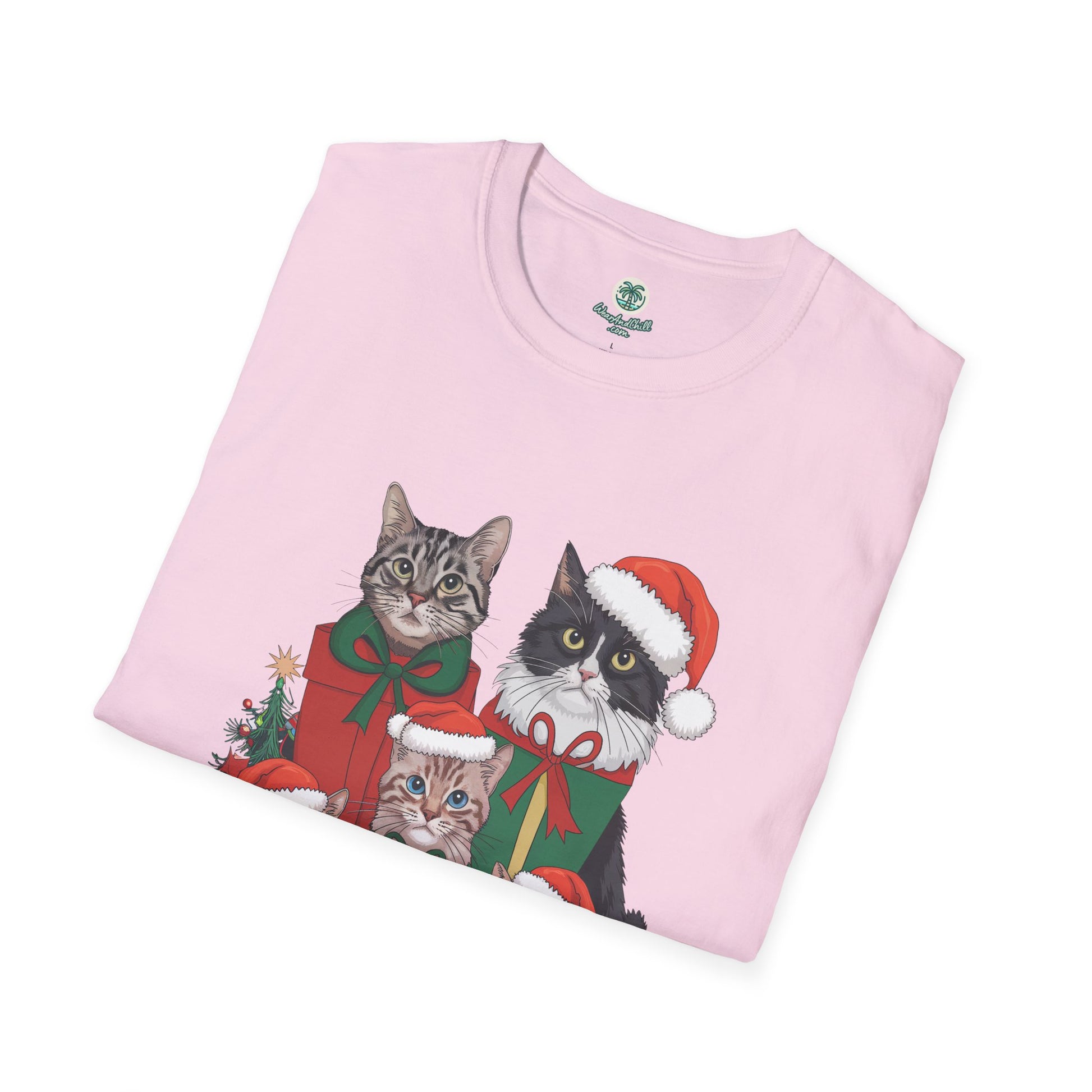 Introducing the *purrfect* holiday tee from our Christmas & Cats Collection! This adorable t-shirt features whimsical cats adorned with present-shaped collars, capturing the festive spirit of the season. Made from ultra-soft, breathable cotton, this charming top is perfect for cozy holiday gatherings or a cheerful day out. The playful design combines the love of cats and Christmas, making it an ideal gift for cat enthusiasts and holiday lovers alike. Available in multiple sizes and featuring a comfortable fit, this t-shirt will add a dash of joy to your festive wardrobe. Embrace the holiday cheer with our Cats with Present-Shaped Collars tee!