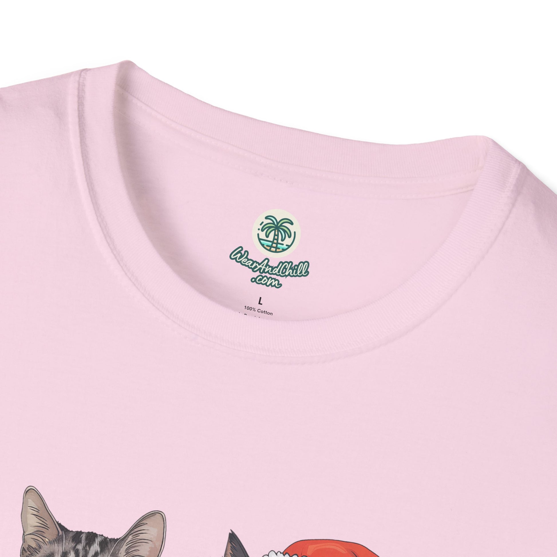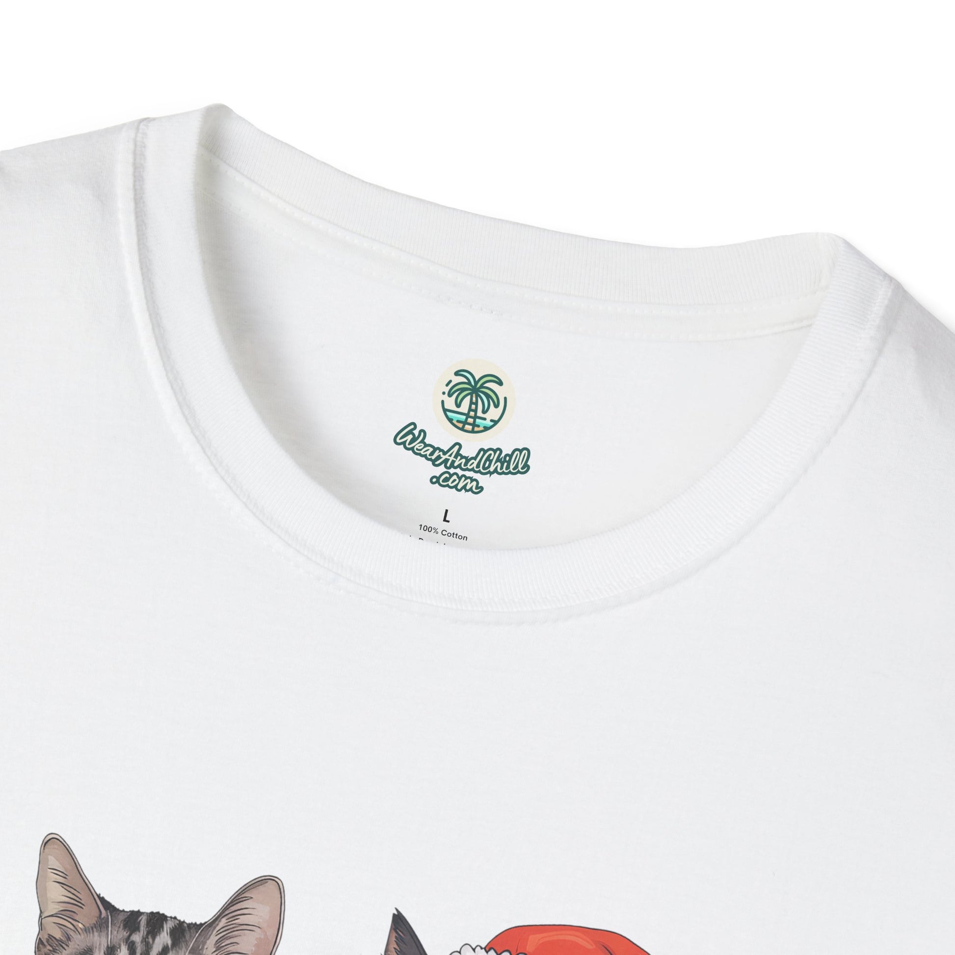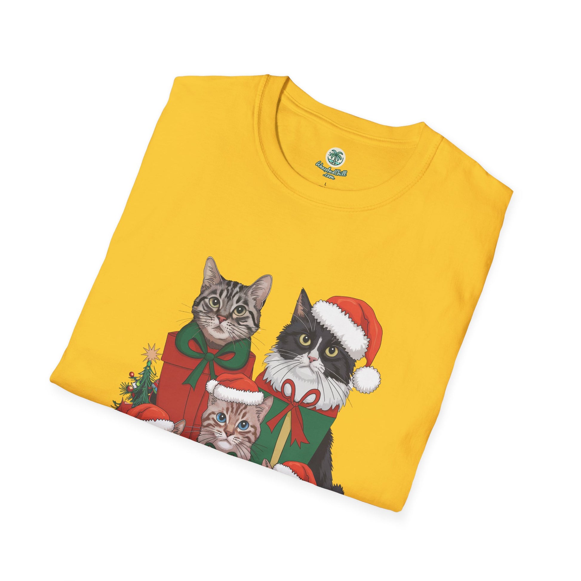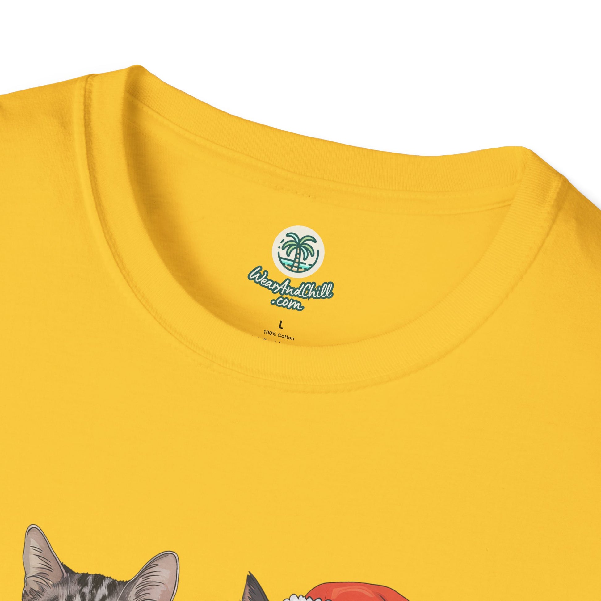 Introducing the *purrfect* holiday tee from our Christmas & Cats Collection! This adorable t-shirt features whimsical cats adorned with present-shaped collars, capturing the festive spirit of the season. Made from ultra-soft, breathable cotton, this charming top is perfect for cozy holiday gatherings or a cheerful day out. The playful design combines the love of cats and Christmas, making it an ideal gift for cat enthusiasts and holiday lovers alike. Available in multiple sizes and featuring a comfortable fit, this t-shirt will add a dash of joy to your festive wardrobe. Embrace the holiday cheer with our Cats with Present-Shaped Collars tee!