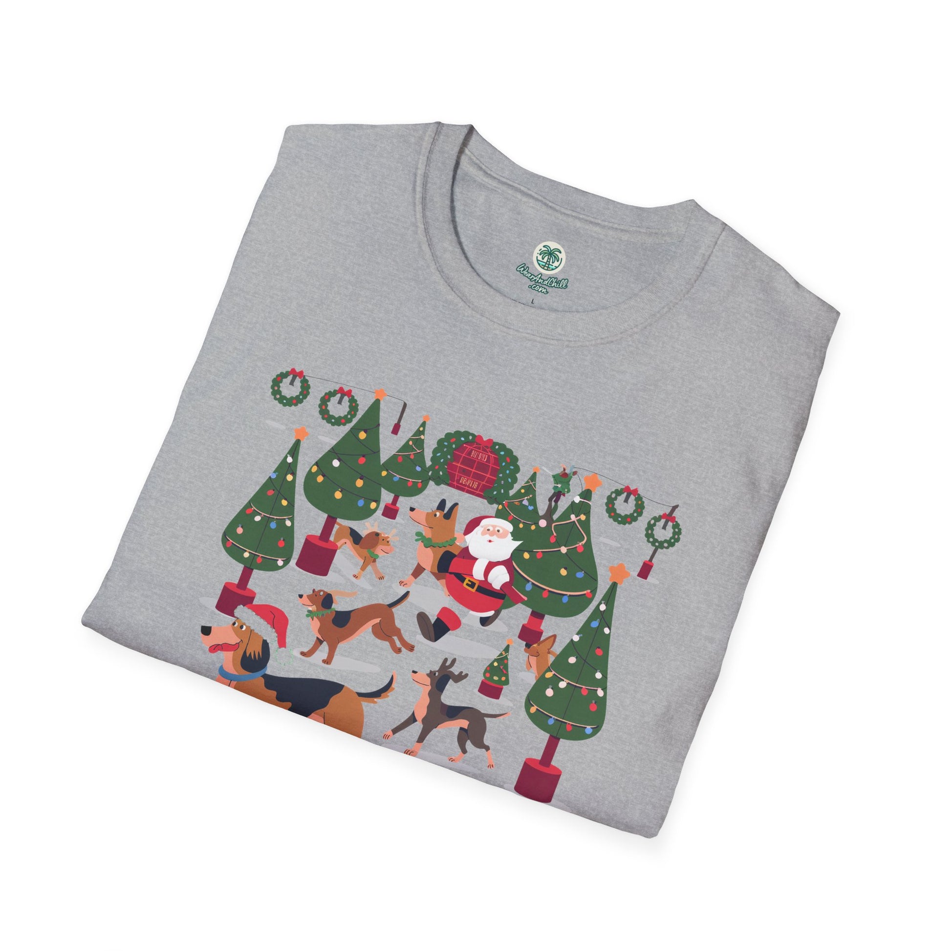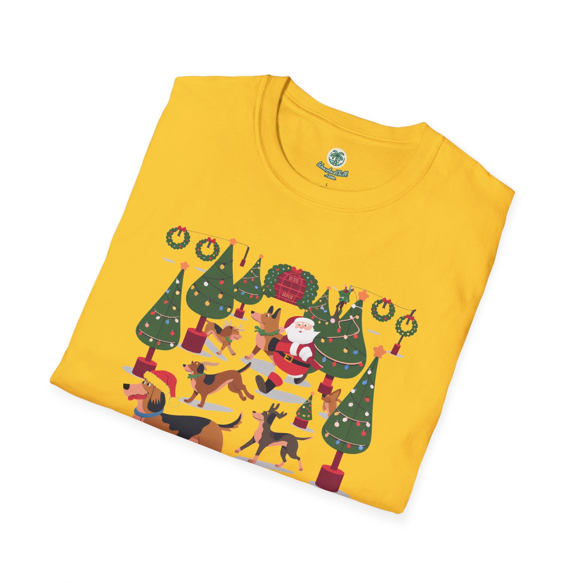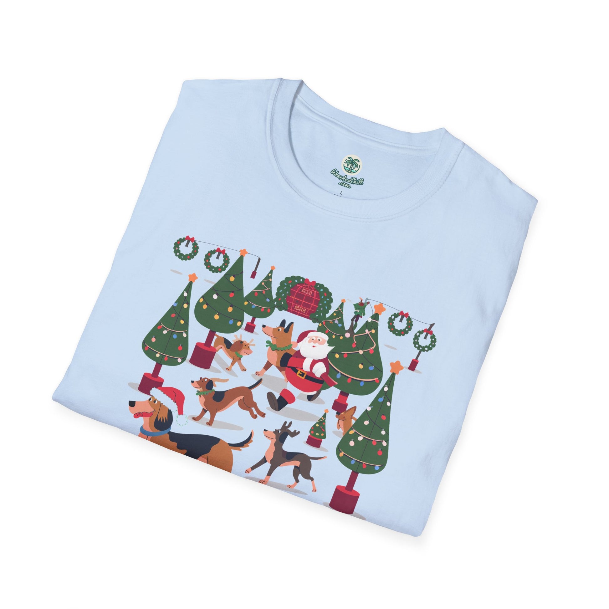 Illuminate your holiday spirit with our "Dogs Prancing Through a Festival of Lights" T-shirt from the Christmas & Dogs Collection. This delightful tee showcases playful pups frolicking amidst twinkling lights, capturing the joyous essence of the season. Crafted from ultra-soft, breathable cotton, it promises both comfort and style, perfect for festive gatherings or cozy nights in. Available in a variety of sizes, this shirt is an ideal gift for dog lovers and holiday enthusiasts alike. Embrace the magic of Christmas and let your outfit shine with the warmth of wagging tails and glowing lights.