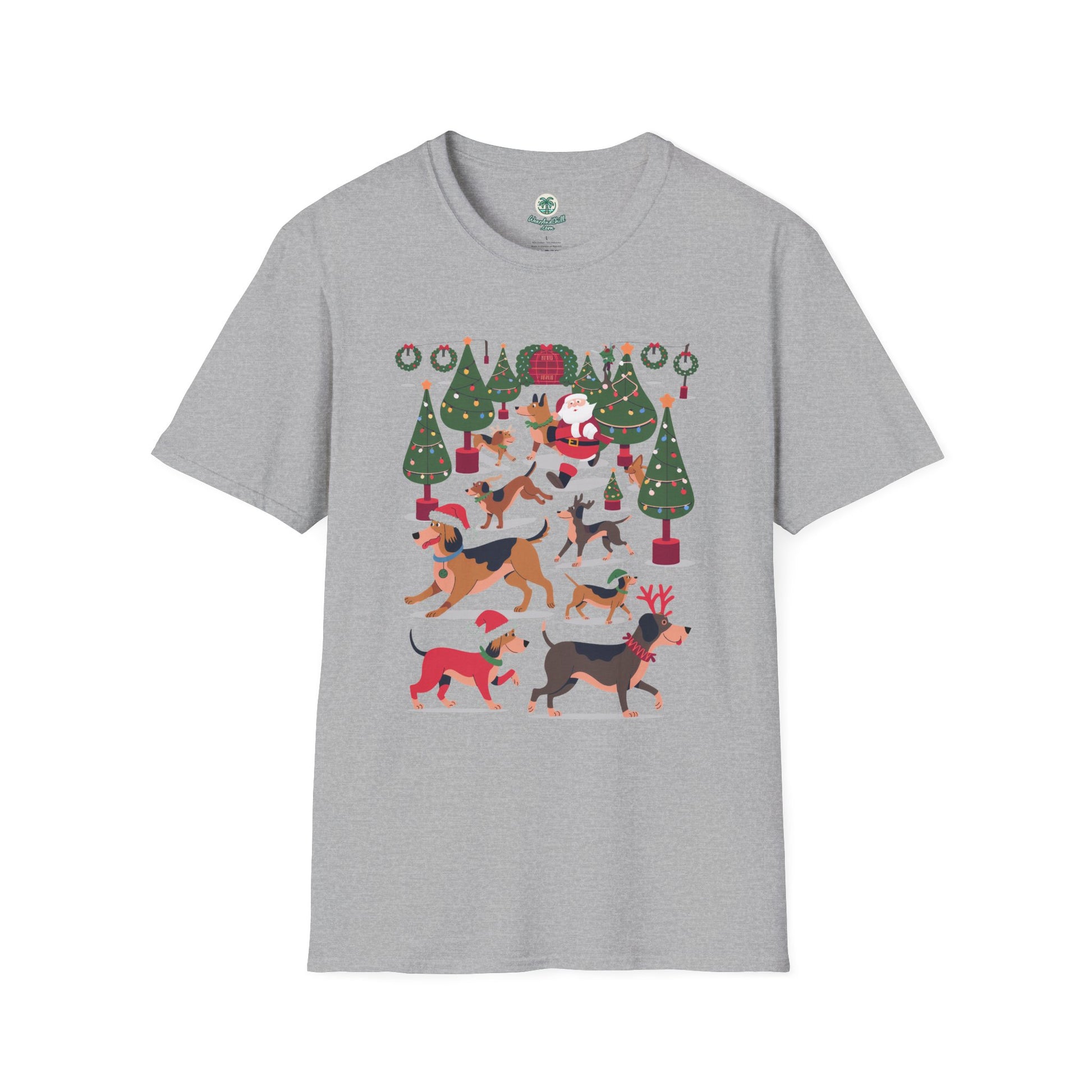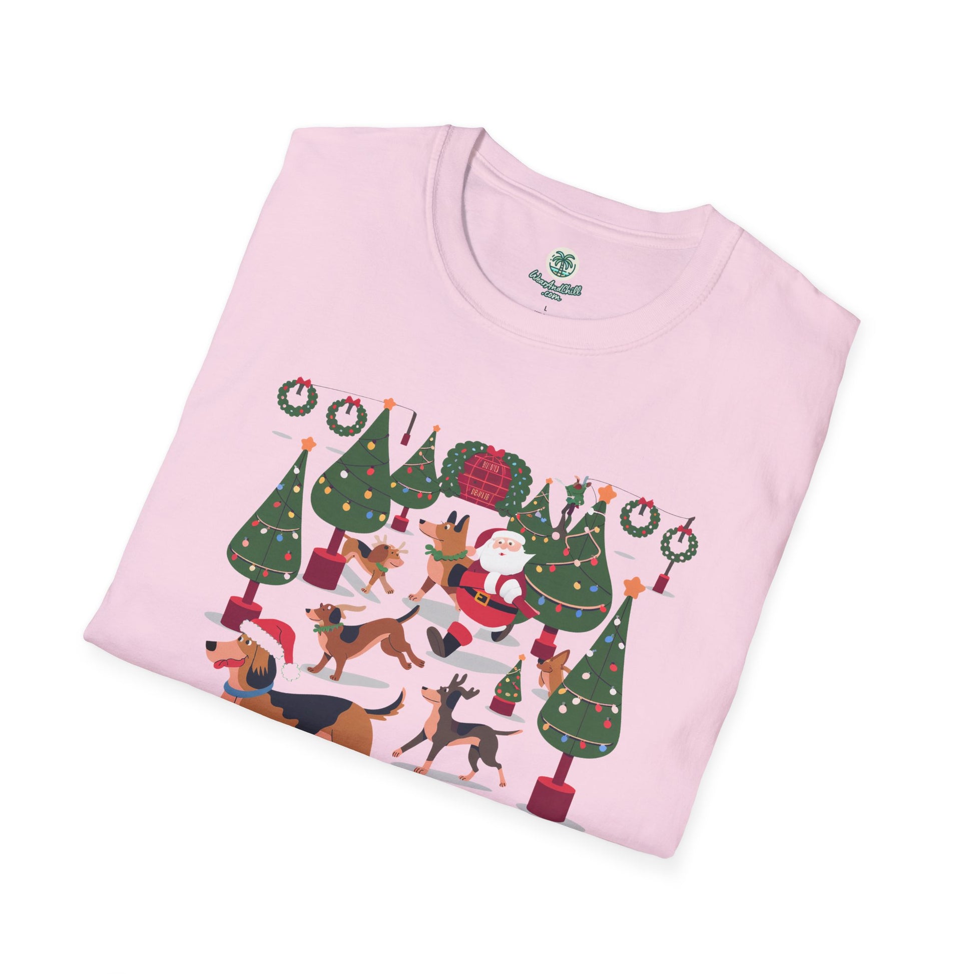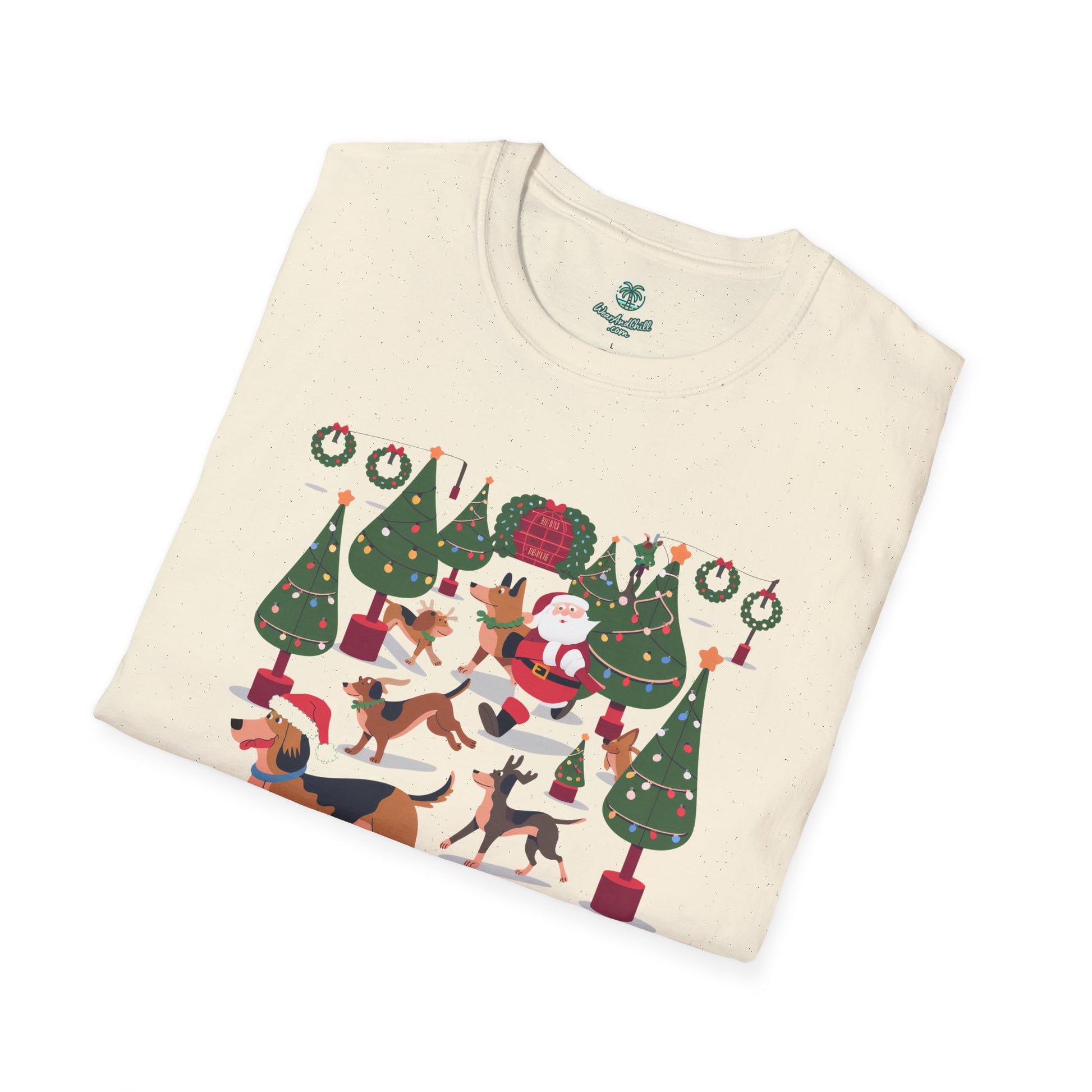 Illuminate your holiday spirit with our "Dogs Prancing Through a Festival of Lights" T-shirt from the Christmas & Dogs Collection. This delightful tee showcases playful pups frolicking amidst twinkling lights, capturing the joyous essence of the season. Crafted from ultra-soft, breathable cotton, it promises both comfort and style, perfect for festive gatherings or cozy nights in. Available in a variety of sizes, this shirt is an ideal gift for dog lovers and holiday enthusiasts alike. Embrace the magic of Christmas and let your outfit shine with the warmth of wagging tails and glowing lights.