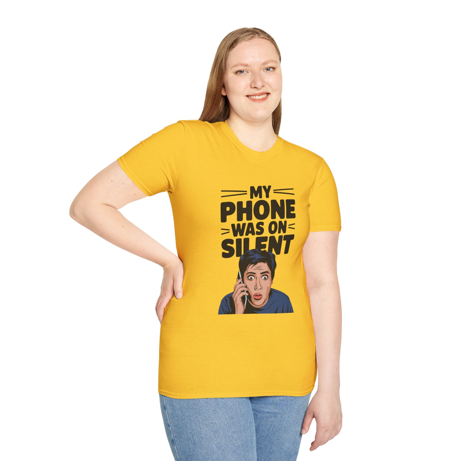 Stay witty with our "My phone was on silent" white lie t-shirt! Crafted from premium, soft cotton, this tee brings a touch of humor to your wardrobe. Perfect for casual days or social gatherings, its eye-catching design and comfortable fit ensure you'll stay both stylish and playful. Whether you're making a cheeky excuse or just love a good laugh, this shirt is a must-have. Add a dash of fun to your collection with our white lie t-shirt today!