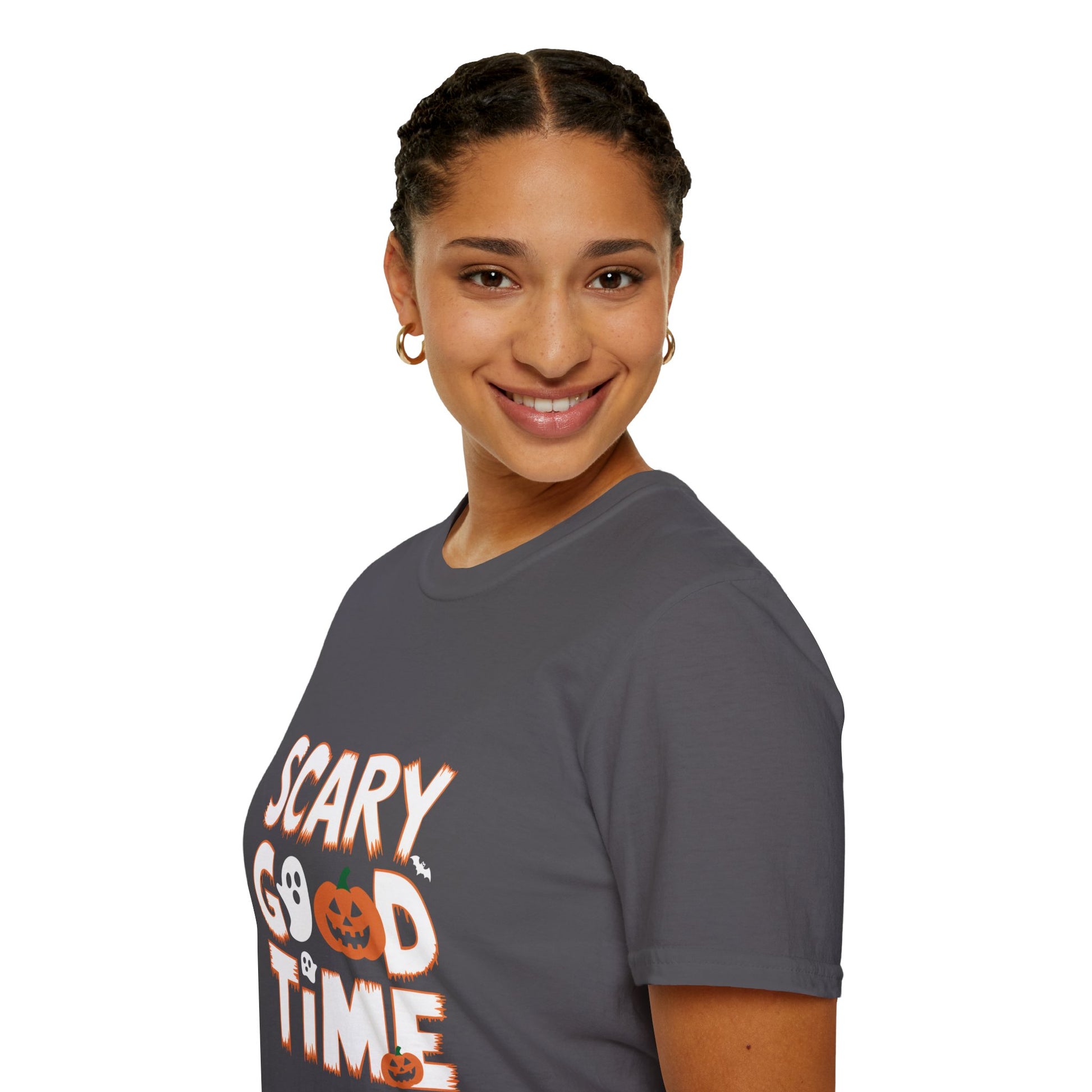 Get ready for a Spooktacular Season with our "Scary Good Time" White Lie T-Shirt! This Halloween-inspired tee blends comfort and style with a cheeky twist. Made from 100% soft cotton, it ensures all-day coziness. Whether you're trick-or-treating or hitting a haunted house, this shirt is your perfect companion for a night of fright. Embrace the fun and ghostly vibes with this unique, must-have addition to your Halloween wardrobe!